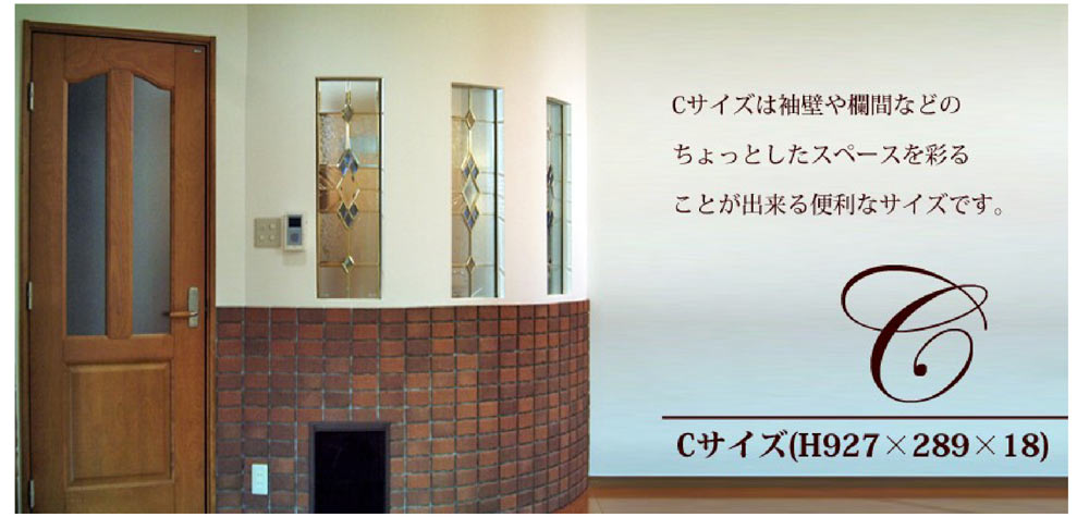 ピュアグラス(ステンドグラス) Cサイズ Cサイズは袖壁や欄間などのちょっとしたスペースを彩ることが出来る便利なサイズです。